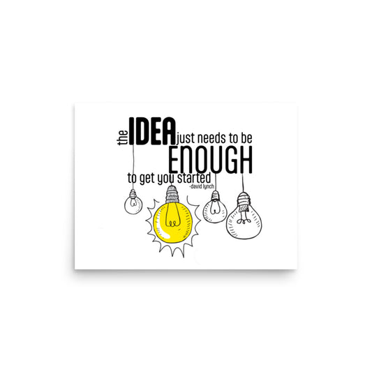 "The idea just needs to be enough to get you started" David Lynch Quote Print