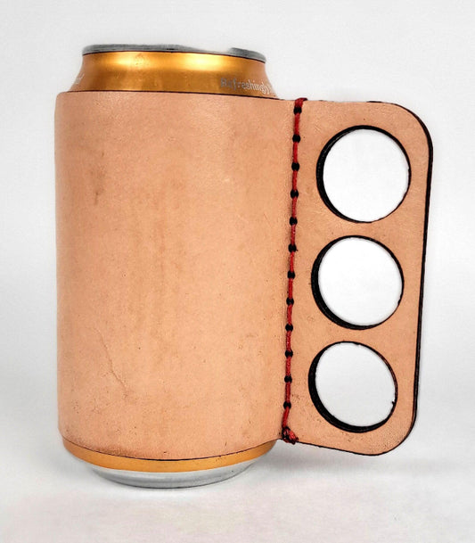 Hand Stitched Leather Beverage Holder/Insulator with Handle for Regular 12oz Sized Beer Cans Soda Cans!